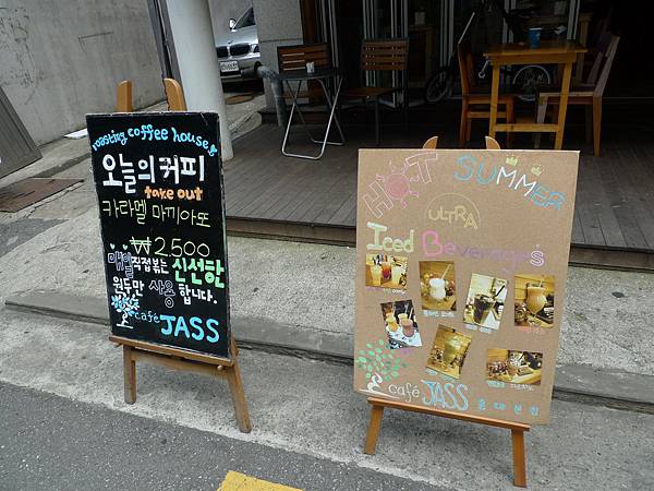 還有一塊黑板粉筆塗鴉 (心中默默的想會不會也是弘大學生的作品XDDD)