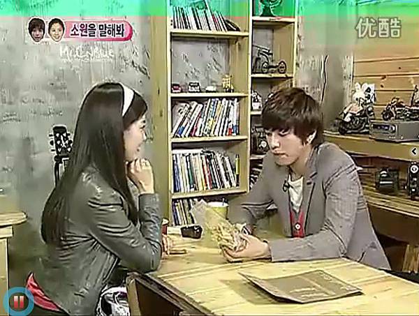 容和傻傻的在咖啡廳裡頭等徐玄~一見到徐玄進來後,可愛的拉長音"HYOOOOON"(當時為徐玄取的親密暱稱XDDD)